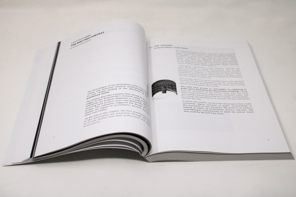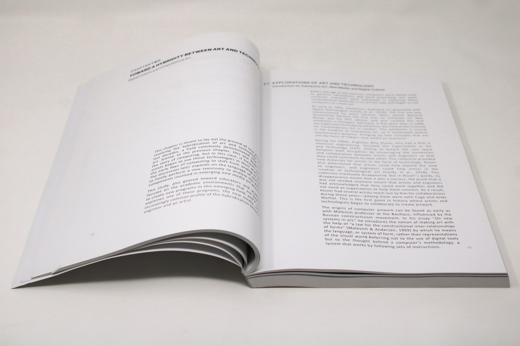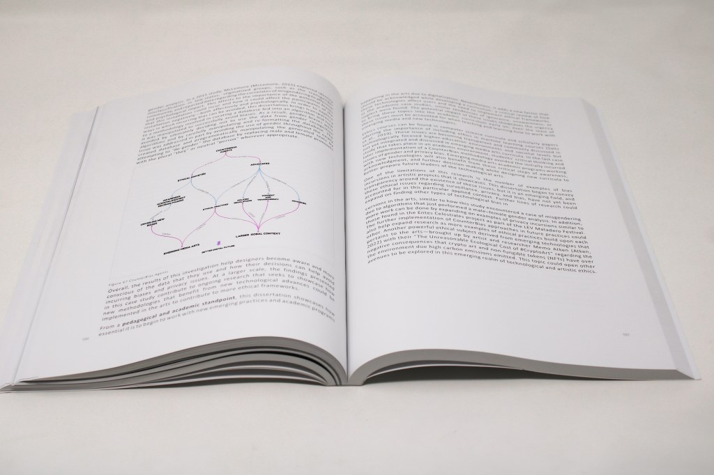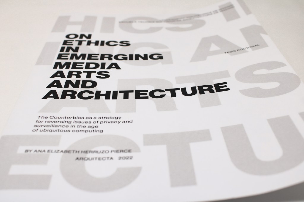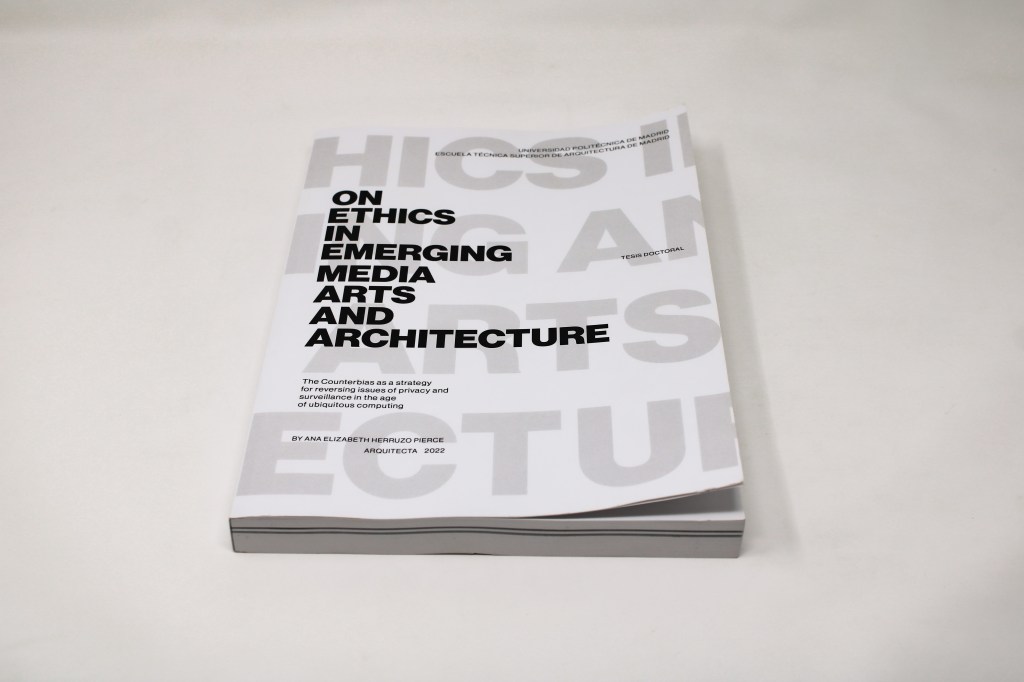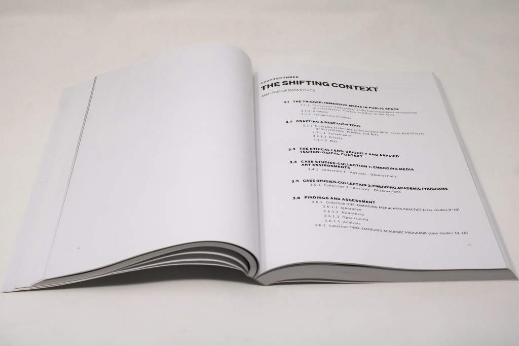 layout for her latest research project, “On Ethics in Emerging Media Arts and Architecture”.